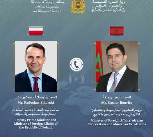 وجاء هذا الموقف في بيان مشترك صدر اليوم الثلاثاء، عقب مباحثات هاتفية بين وزير الشؤون الخارجية والتعاون الإفريقي والمغاربة المقيمين بالخارج، ناصر بوريطة، ونائب الوزير الأول ووزير الشؤون الخارجية البولوني، رادوسلاف سيكورسكي.