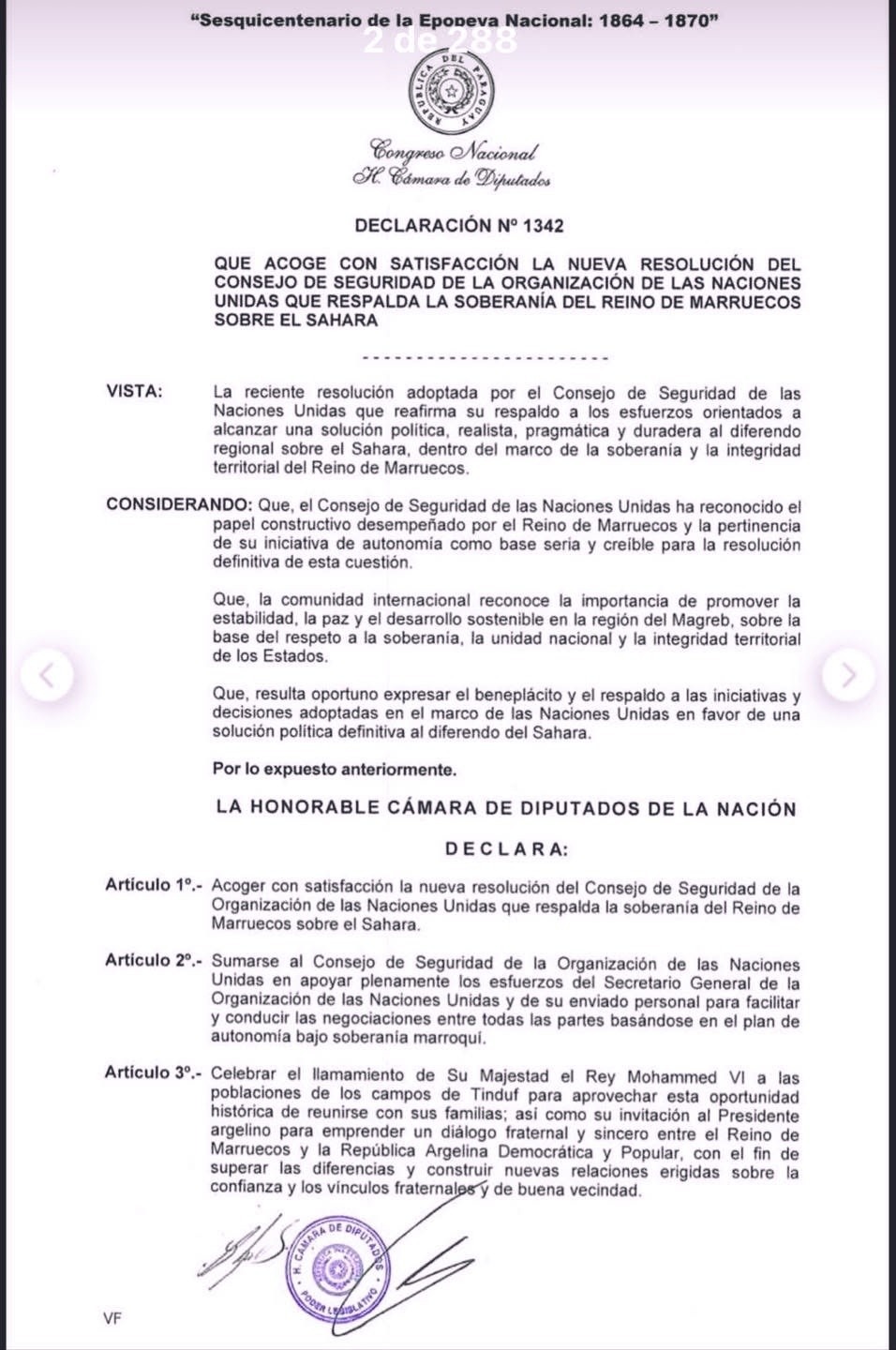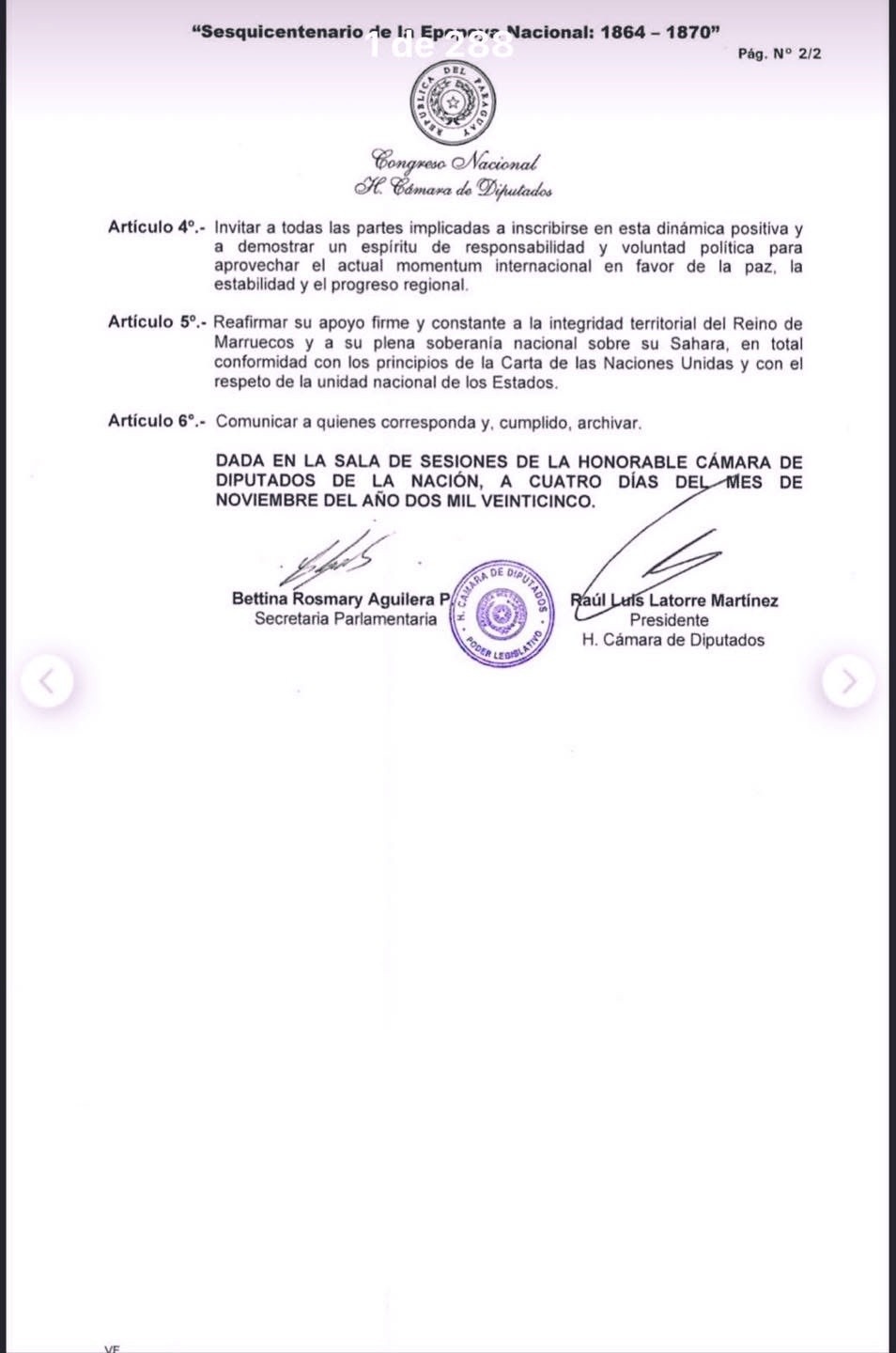 برلمان الباراغواي يشيد بقرار الأمم المتحدة الأخير حول الصحراء المغربية ويجدد دعمه لمبادرة الحكم الذاتي