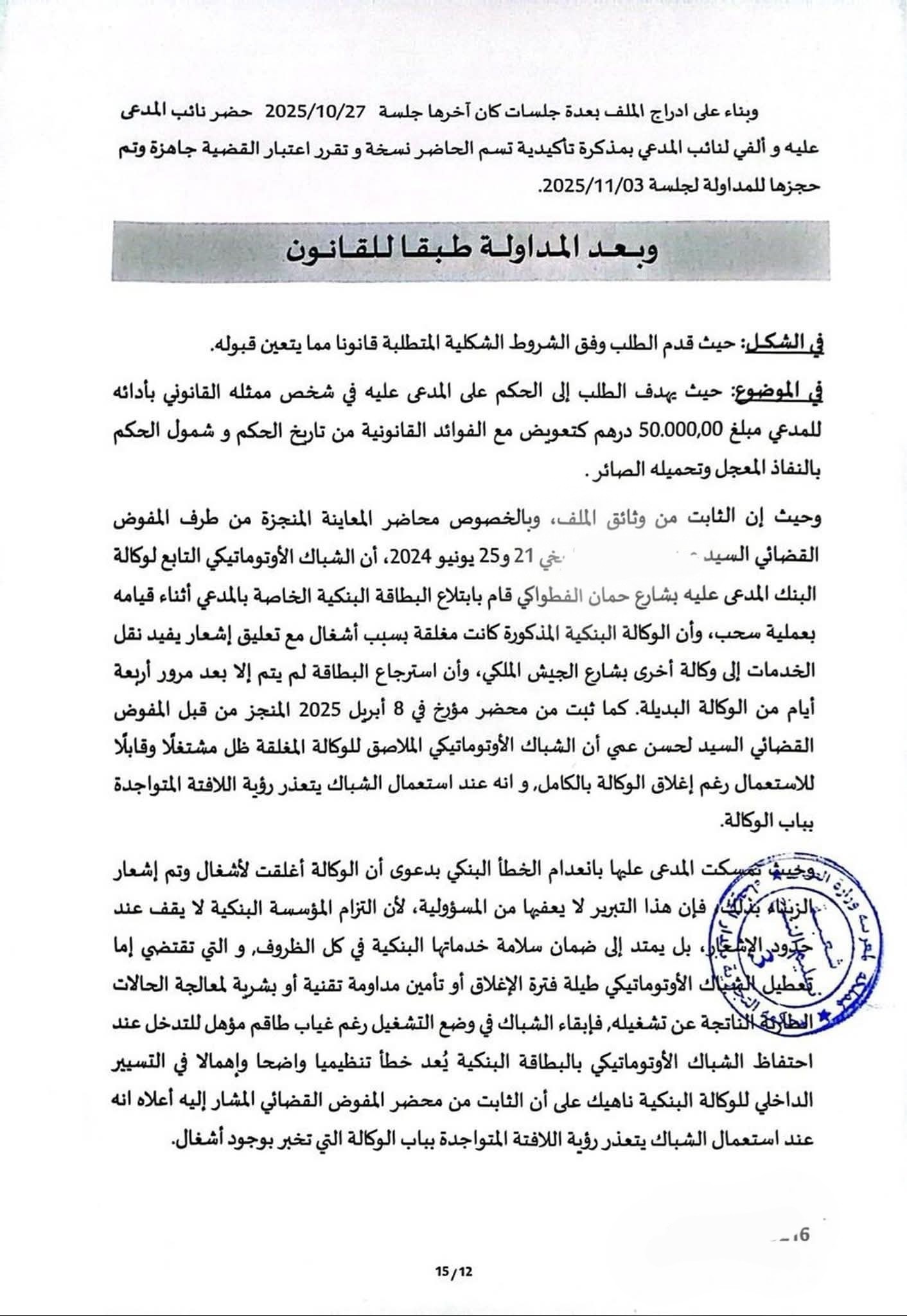 واعتبرت المحكمة أن إبقاء الشباك الأوتوماتيكي في وضعية تشغيل دون توفير مراقبة أو حضور إداري، يشكّل إخلالًا بواجب العناية الذي تلتزم به المؤسسات البنكية تجاه زبنائها، ويعكس تقصيرًا في تدبير مرفق عام يعتمد عليه المواطنون في خدماتهم اليومية.